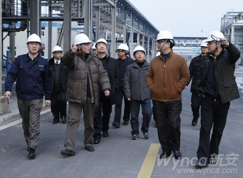 徐冠巨一行在王偉董事長、副總經理林加善、周家海,黨委委員、辦公室主任包雪傳的陪同下實地現場查看了馬目化工園區。在新安邁圖,新安邁圖總經理付立民向徐冠巨一行作了新安邁圖發展的總體情況匯報,就新安邁圖開工建設到單體試車成功的情況一一作了介紹。同時,他還向徐冠巨一行介紹了新安邁圖安全文化的建設和執行情況,2011年新安邁圖的發展戰略,以及人才引進和人力資源建設情況。王偉董事長就新安邁圖的二期項目建設問題作了情況說明。