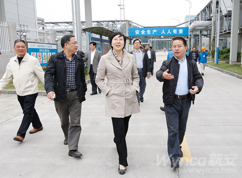 4月9日,浙江省環保廳副廳長方敏、杭州市環保局副局長金經人一行在建德市副市長徐建華,市政協副主席洪國根,建德市環保局局長高旭芳的陪同下到集團馬目化工園區考察。
