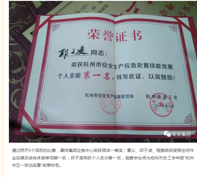 新安集團獲2017年杭州市安全生產應急處置技能競賽第一名